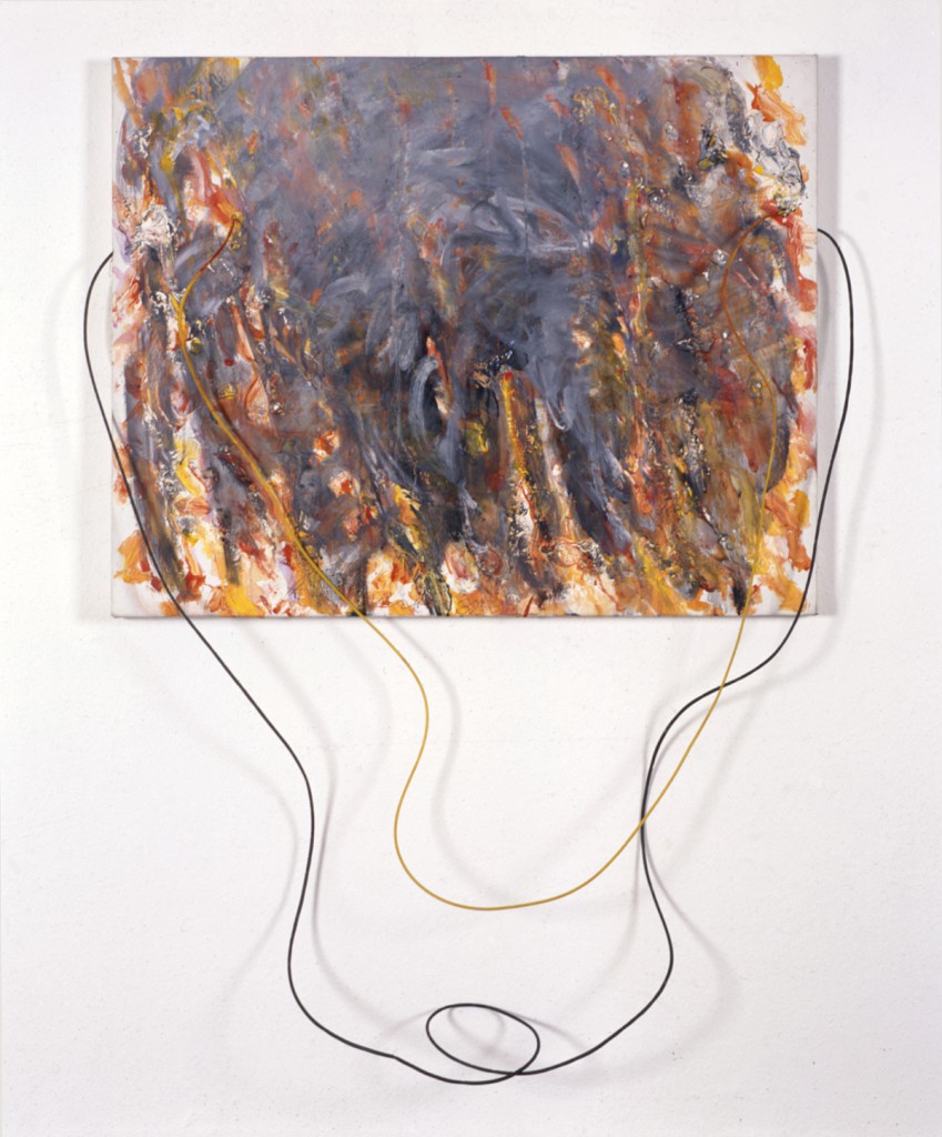 Gerhard Hoehme, Feuergott, 1982, Acrylfarbe auf Leinwand, PE Schnüre, 160 x 120 cm
